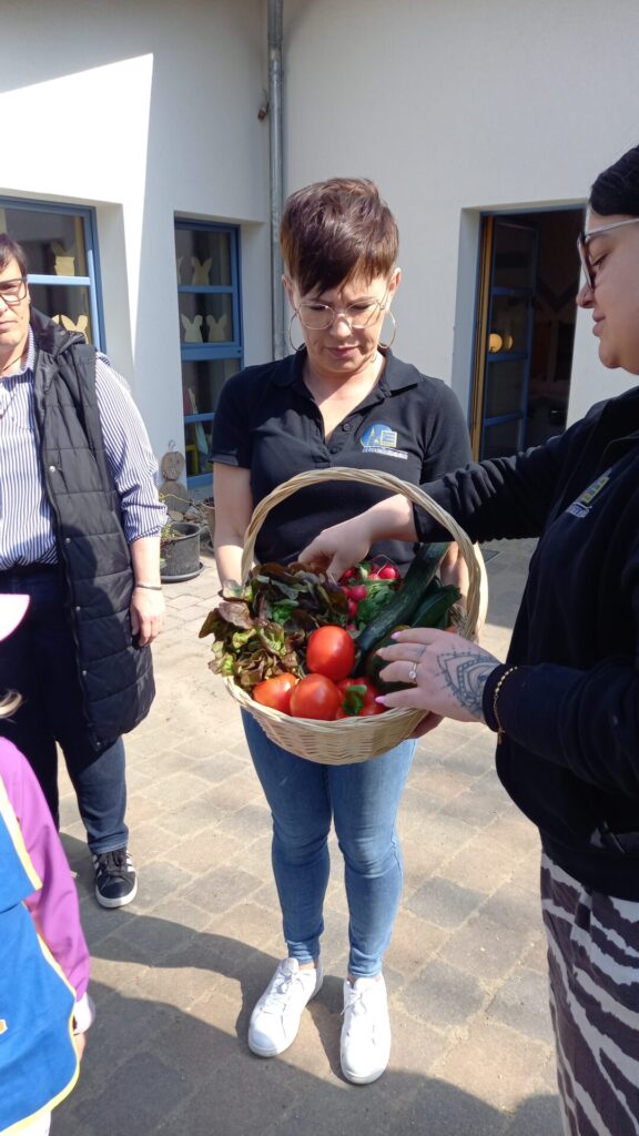 Am 17.4.2026 hatte der gemeindliche Kindergarten St. Martin Besuch von der EDEKA-Stiftung. Das zweiköpfige Gartenpflanzteam zusammen mit dem Leitungsteam vom örtlichen „EDEKA Bachmann“ mit Frau Beisel hatte viel Erde, Pflanzen und Samen, aber auch Schürzen, Gießkannen und Gartenbücher für die Kinder im Gepäck.