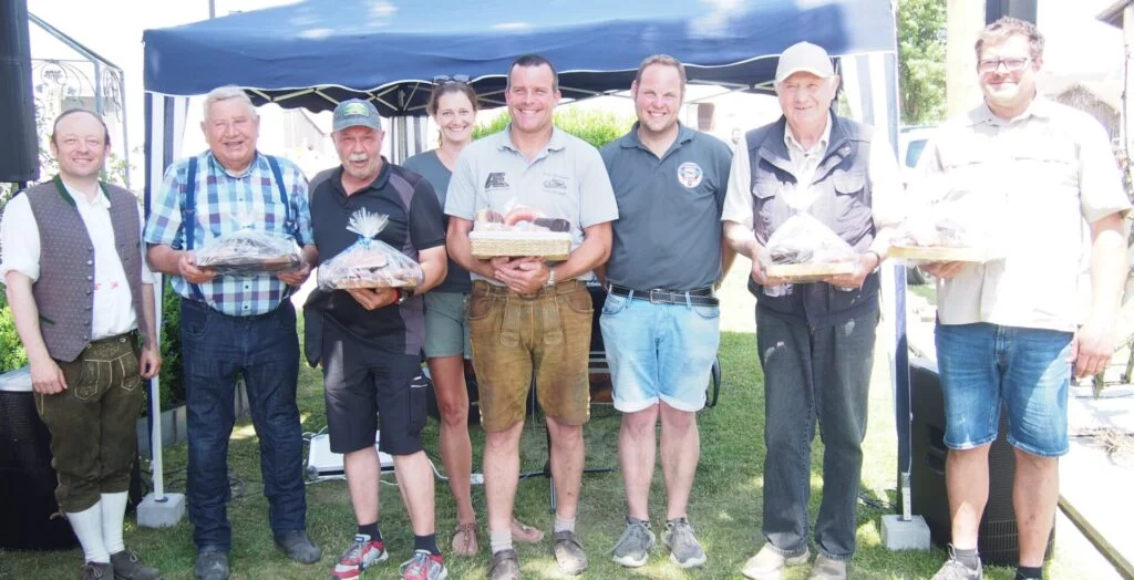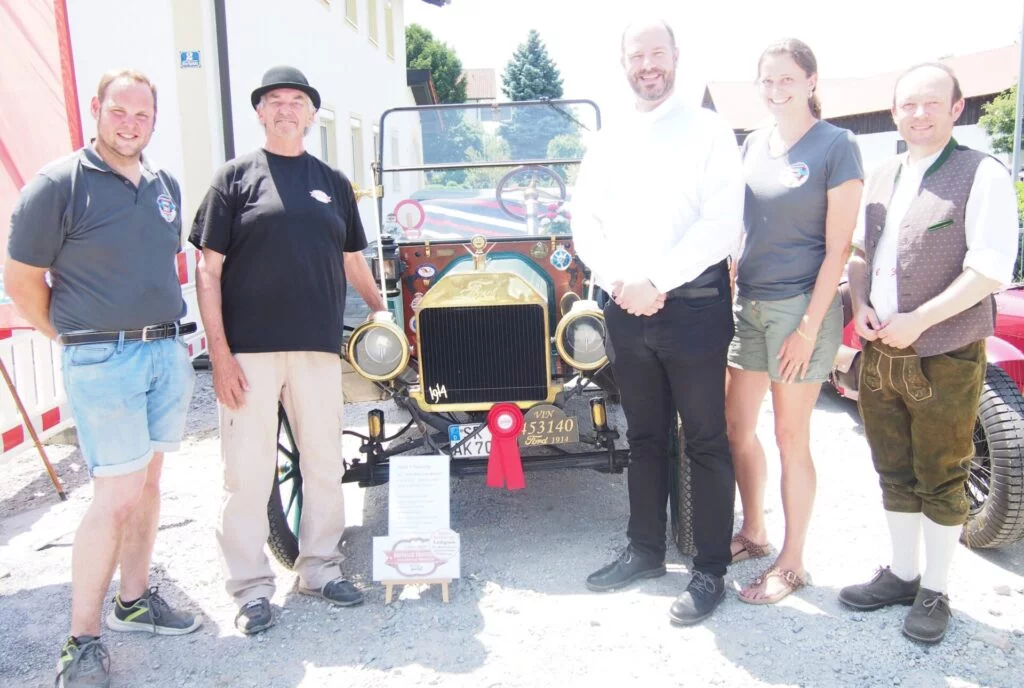 Beim Rundgang durch die landwirtschaftlichen Hofstellen und dem Betrachten der auf „Hochglanz“ polierten Autos konnte so mancher Besucher Erlebnisse mit seinem ersten eigenen Automobil in Erinnerung rufen. Vor allem wurde fast jedem klar, dass jedes der schönen Fahrzeuge ein Stück Geschichte geschrieben hat und jeweils die „gute alte Zeit“ zum Greifen nahe kam. Pfarrer Gerhard Pöpperl segnete unter Assistenz der jungen Ministrantin Nina Genau, gefahren auf dem familieneigenen Oldtimer-Unimog, die vielen Kultobjekte bei der kirchlichen Fahrzeugsegnung. Wenke Kiendl und Markus Weinzierl konnten auch bei der Siegerehrung eine Reihe von sehr stolzen Automobilbesitzern und Traktoreneigentümern zu ihren Schätzen beglückwünschen.